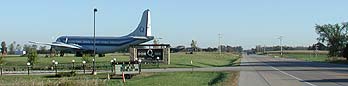 Lands' End homeplace in Dodgeville, Wisconsin, an airplane is parked